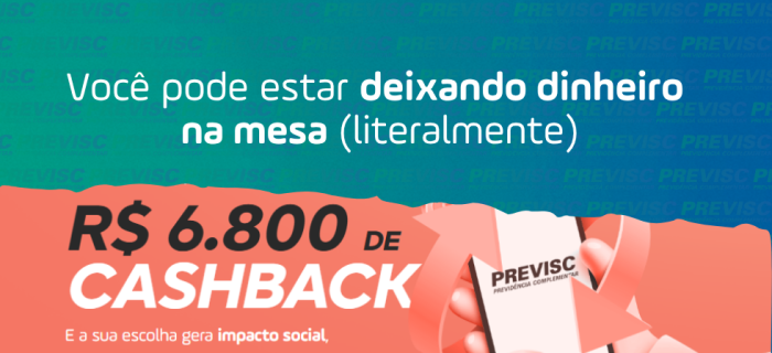 A campanha de portabilidade da Previsc traz um benefício direto: Você pode receber até R$ 6.800 de cashback, dependendo do valor portado. Mas não para por aí. Ao fazer a portabilidade: • Você melhora o potencial do seu investimento • Recebe um valor de volta • E ainda gera impacto positivo